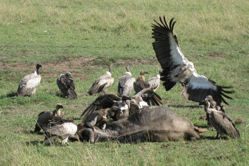 Så fort ett rovdjur lämnat sitt byte flockas gamarna – ofta flera olika arter – kring det döda djuret
