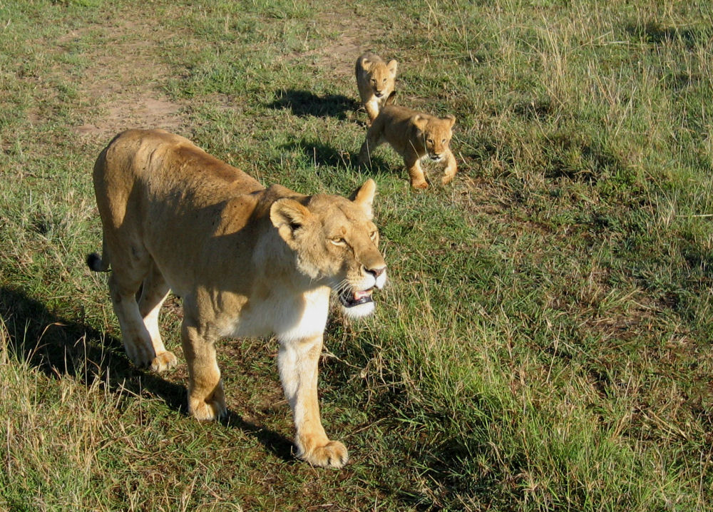 De små lejonungarna är mycket sårbara under de första levnadsåren och är alltid nära mamman.