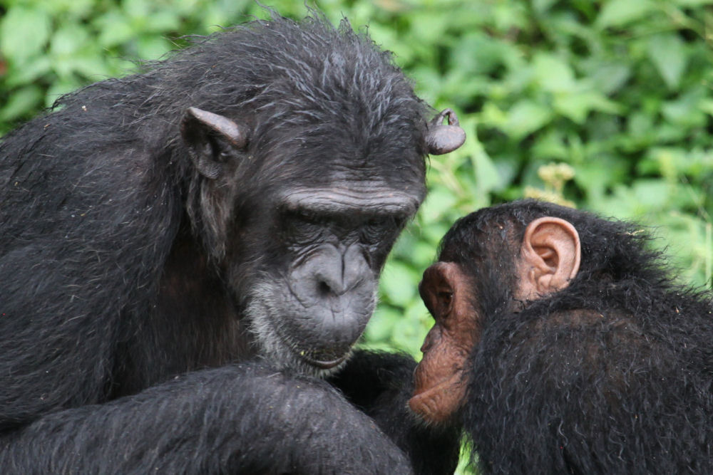 Banden mellan en vuxen schimpans och en unge kan vara mycket starka även om det inte är den
