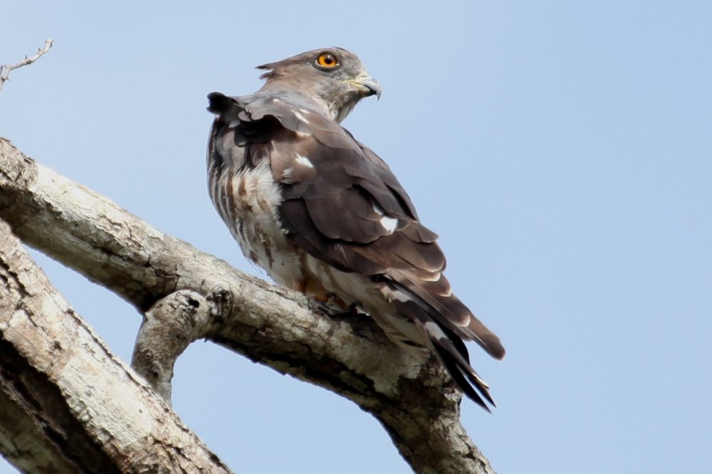 de hökartade rovfåglarna. Den är mörkt brun som fullvuxen men ljusbrun som ungfågel. Den jagar i