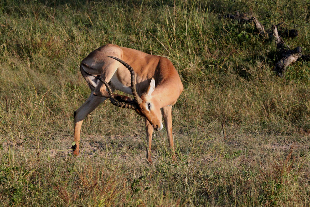 hornen intvinnade i varandra. Studier har visat att en impalabock håller sitt revir i genomsnitt i 80
